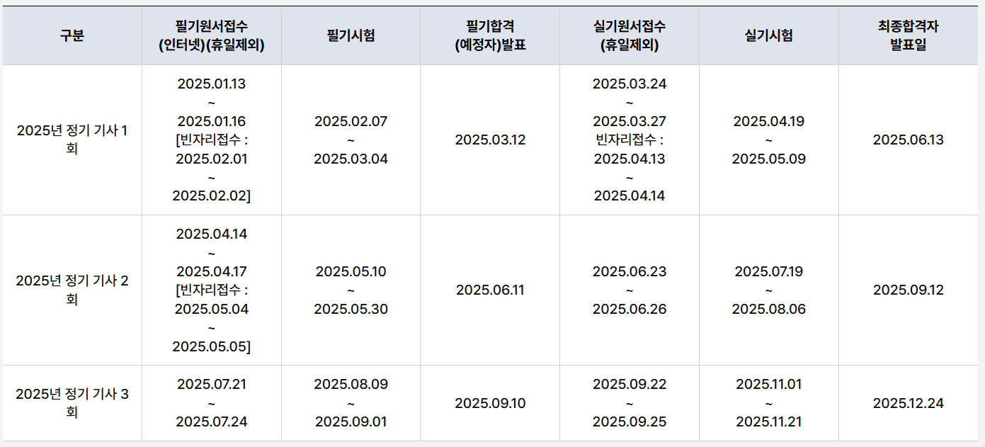 ✔ 시험 일정은 변경될 수 있으므로 Q-Net 홈페이지에서 최신 정보를 확인해야 합니다.