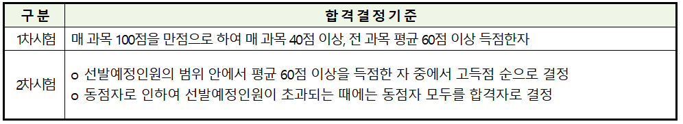 - 1차 시험 불합격자는 2차 시험 무효 처리