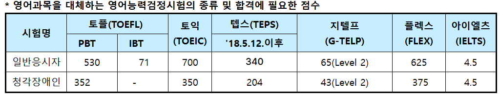 📌시험 접수 전까지 반드시 유효한 성적을 준비해 두셔야 합니다.