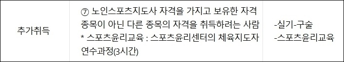 추가 취득 과정 (기존 노인 스포츠 지도사 자격 보유자 대상)