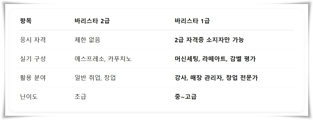 바리스타 1급 vs 2급 – 무엇이 다를까?