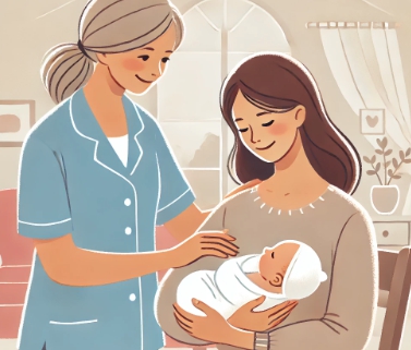 신생아가 건강하게 성장할 수 있도록 돕습니다. 목욕 및 기저귀 교체, 배꼽 소독, 수유 보조, 신생아의 건강 상태 확인 및 응급 대처 방법 등이 포함됩니다.