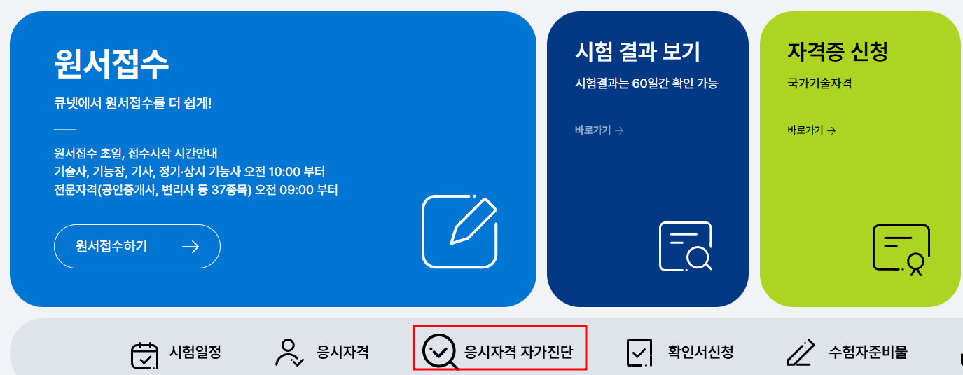 👉 자세한 응시 자격은 한국산업인력공단(Q-Net) 홈페이지에서 확인할 수 있습니다. 자격 자가진단으로 정확한 응시 자격을 확인할 수 있습니다.