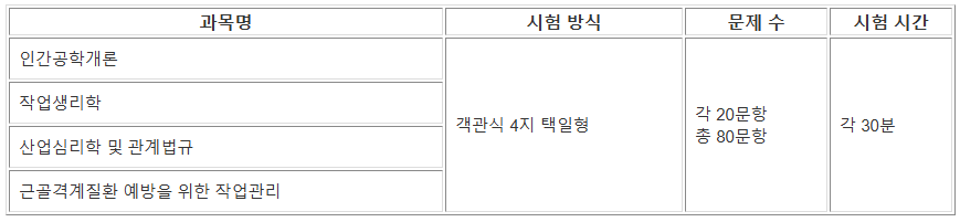 인간공학기사 시험과목 및 방법
