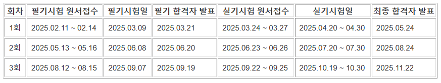 ✔ 시험 일정은 변경될 수 있으므로 Q-Net 홈페이지에서 최신 정보를 확인해야 합니다.