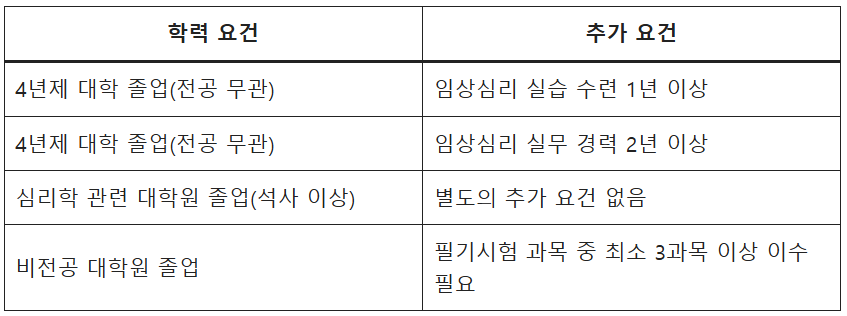 즉, 단순히 심리학을 전공했다고 해서 시험을 볼 수 있는 것이 아니라 반드시 실무 경험이 필요합니다.