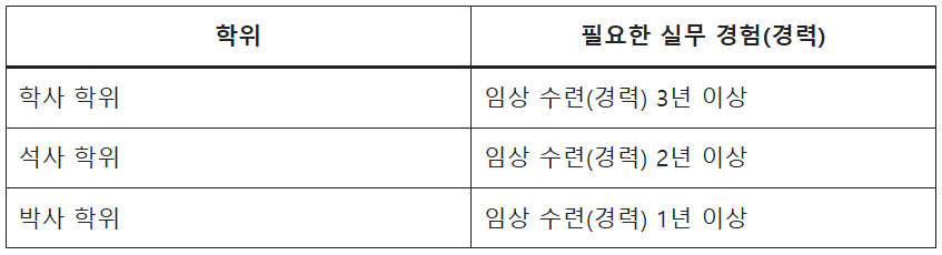 또한, 학력에 따라 실무 수련 요건이 달라집니다.