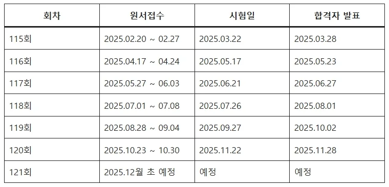 - 시험 후 약 1주 이내 합격자 발표