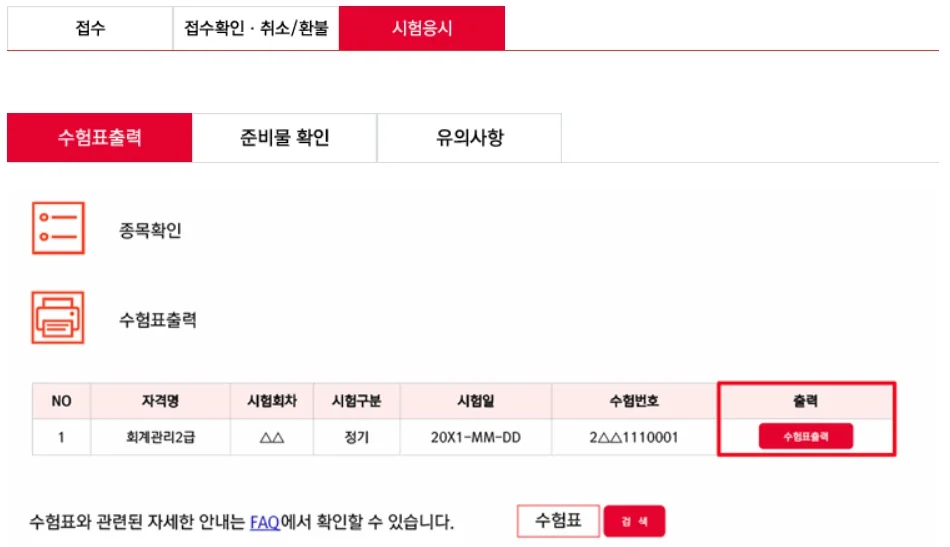 4단계: 수험표 출력 및 시험 준비