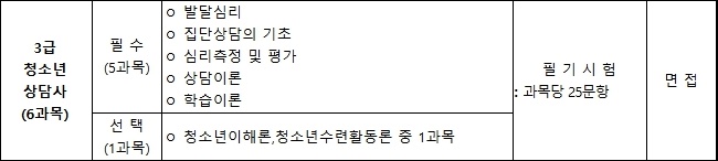 청소년상담사 3급 시험과목 및 합격 기준