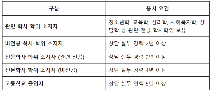 ✔ 청소년 상담복지센터, 학교 상담실, 복지시설 등에서 정식 근무한 경력만 인정