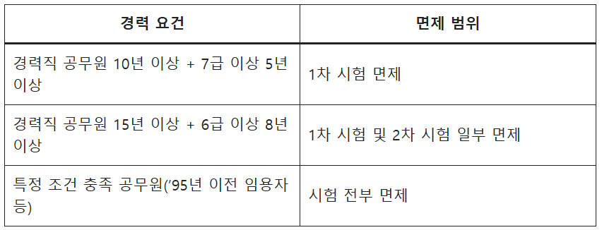 2) 공무원 경력에 따른 시험 면제 (특정 경력자용)