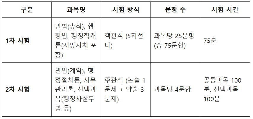 • 1차 시험: 과목당 40점 이상 + 전체 평균 60점 이상